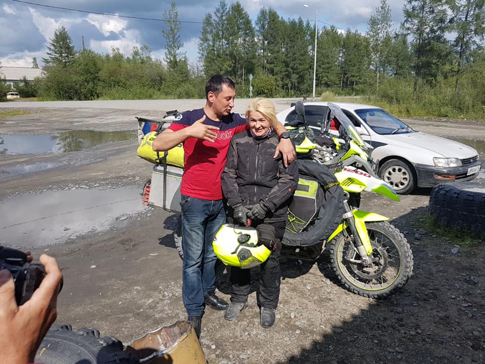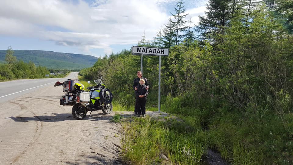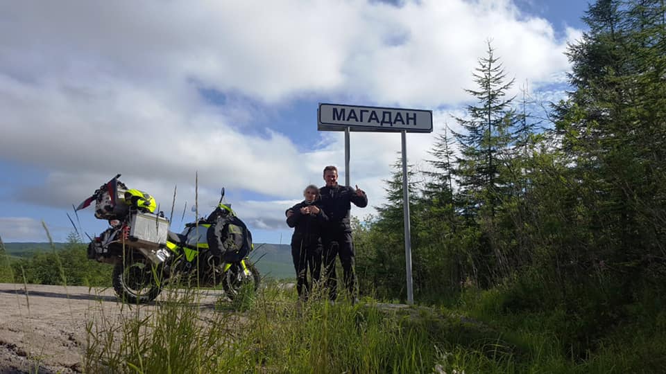 Po příjezdu do Susumanu nás hodné bábušky na hotelu ubytovaly ještě před obědem s tím, že nás odpoledne přestěhují do apartmánu s koupelnou - to je jiný přístup. Prospíme se, přestěhujeme, zajdeme pro pivo a uděláme naši údržbu. Hned ráno vyrážíme směr Magadan po Tentinske trase plné průsmyků a nádherné přírody - škoda že zase celý den v dešti. Po cestě potkáváme partičku tří zlatokopů a ještě dnes litujeme, že jsme s nimi na toho berana na rožni nejeli. Řešíme problém s chlazením, neustálý příliv bahna se na chladičích zapéká v cihlu a chlazení nestíhá .. Při přejezdu průsmyků je v údolích vidět mnoho pozůstatků převážně nákladních automobilů - nemají to tu kluci hlavně v zimě lehký. V Omtschak/Омчак čerpáme palivo a pokračujeme přes Transportnyy/Транспортный a Ust-Omchug/Усть-Омчуг do Palatka/Палатка kde se napojujeme na federální trasu a ve večerních hodinách dorážíme do MAGADANU po 25 dnech a 13.094 km jsme to dokázali! Jsme první a jediní, kdo to ve dvou na jedné motorce dokázali (pokud je nám známo). Po pár pokusech nacházíme volný hotel a začínáme slavit. Přiložené video je delší, ale mapuje pro pochopení atmosféry posledních 623 km ze Susumanu do Magadanu.
