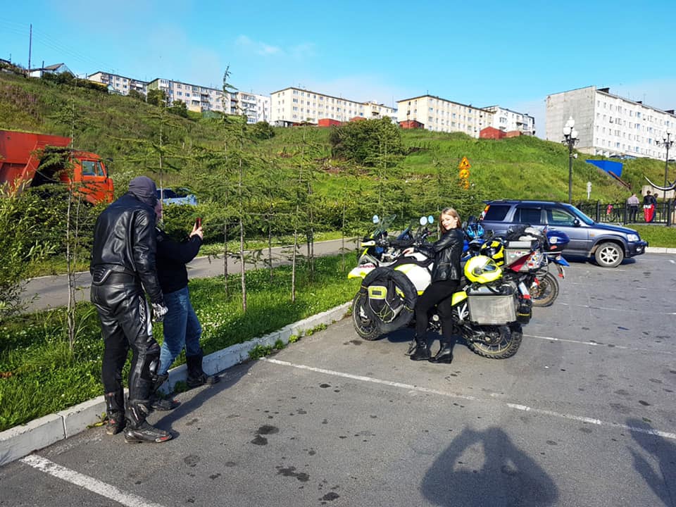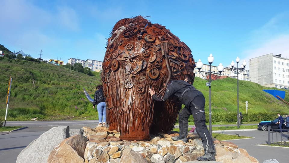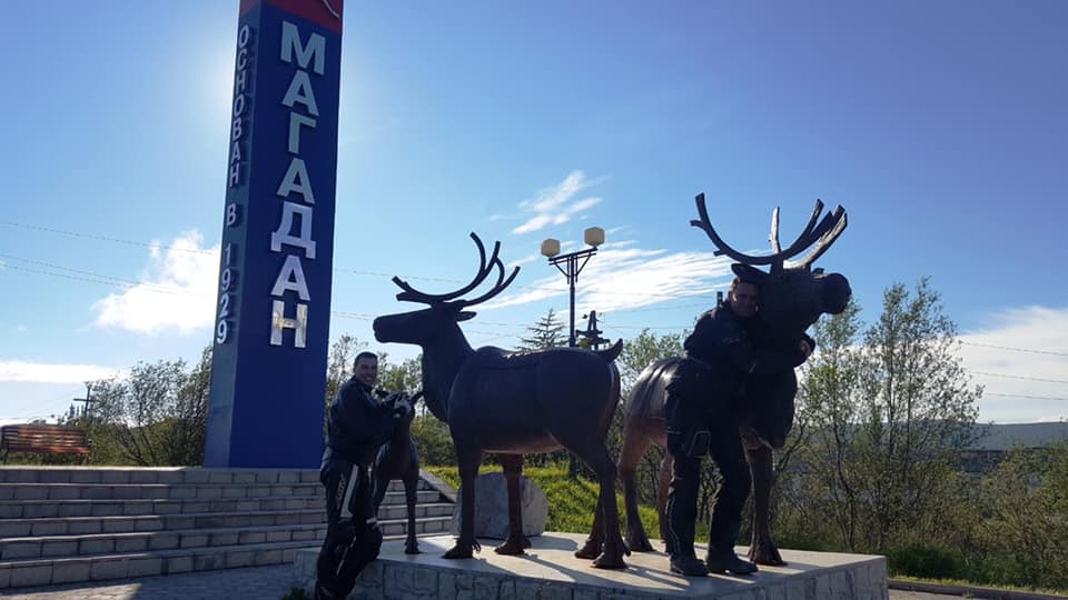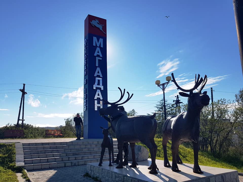 Chtělo by se opakovat známý reklamní slogan "tady je svět ještě v pořádku" ????????Všudypřítomná otevřená náruč je prostě úžasná a nezapomenutelná. Po nákupech a opravě je čas na návštěvu všech atraktivních míst. Míříme tedy na hlavní příjezdovou cestu a za světla a bez deště se fotíme u cedule MAGADAN. Pokračujeme k oslavnému sloupu a Jelení kompozici. Následuje památník Maska smutku, který připomíná utrpení vězňů v pracovních táborech okolního regionu v první polovině 20. století, pokračujeme k památníku Vladimira Semjonoviče Vysockého a okružní jízdu zakončujeme u monumentu Mamuta nad pláží Ochotského moře.