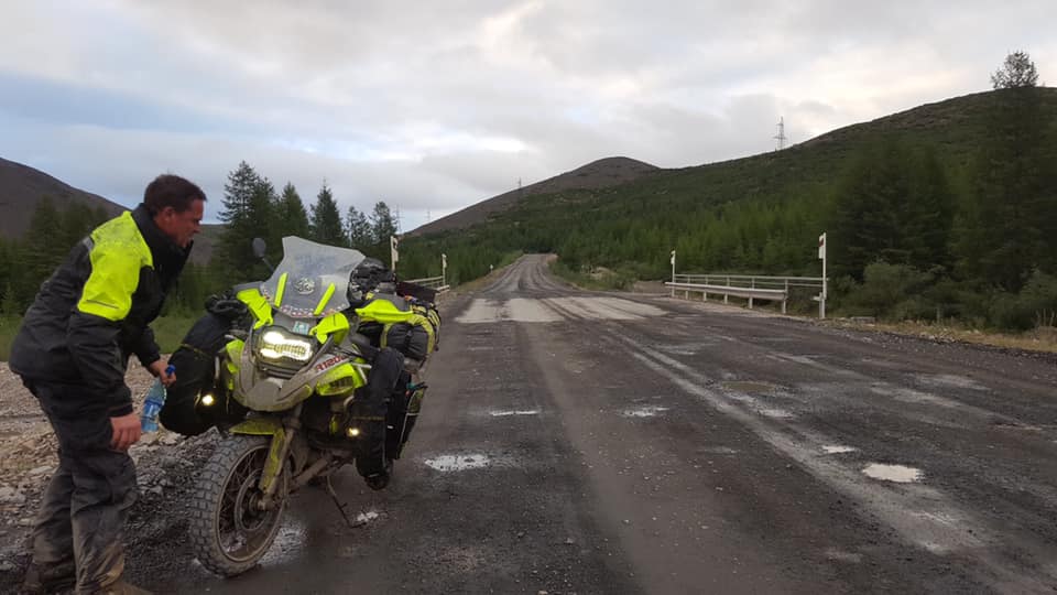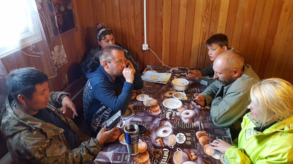 Nejstarší cesta směrem na Ojmjakon/Оймякон je po dlouhotrvajících deštích neprůjezdná již několik dní a cestu směrem na Susuman/Сусуман cca dvě hodiny před naším příjezdem smetla voda. Rezervujeme si poslední volné místo v chatrči a doufáme, že ráno vyrazíme. Nakonec jsme uvízli na 3 dny než se podařilo cestu dál zprovoznit. Byli jsme svědky evakuace (ministerstvem pro zvláštní záležitosti) všech dětí a žen, které s námi rovněž uvízli v osadě. Celé dny trávíme klábosením s místními zlatokopy a dálkovými řidiči, sice se druhý den jedeme přesvědčit jestli je cesta opravdu neprůjezdná, ale stojí nás to jen další pád při zpáteční cestě .. ![]()