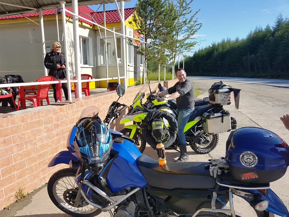 Vyrážíme z Chandyky, pokračujeme na Teply Klyuch, kde doplňujeme benzín, protože další čerpací stanice je za 250 km v osadě Kjubeme. Po pár metrech zastavujeme na kávu, kde se vzala tu se vzala místní kronikářka a zpovídá nás, aby nás mohla zvěčnit ve staré kronice. Samozřejmě probíhá i fotografování, ke kterému se přidává jeden z dálkových řidičů, kteří mají v žíle snad 6 promile. Kousek za vesnicí se poprvé vyválíme v bahně- "jednou to přijít muselo